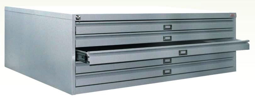 Lielformāta dokumenta uzglabāšanas skapis, izgatavots no tērauda loksnēm, kas aizsargātas pret rūsu un pārklātas ar pulverkrāsu. Pulverkrāsa pēc RAL paletes. Lielformāta skapis, zīmējumu, dokumentu un kartes uzglabāšanai. Skapja atvilknes ir iespējamas izvilkt pilnībā (pa vienai).